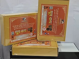Ingredients: Outer Cup is made of Loban (Gum Benzoin), Guggal (Commiphora Wightii) food grade high quality Cow Dung of indigenous breed. Filling is made of Loban, Guggal, Bhimseni Kapoor (Cinnamomum Camphor), Deodar (Cedars Deodara), Nagarmotha (Cyperus Scariosus), Khus Vetiver, Ghel, Palash Beej, Bakuchi (Psoralea Corylifolla) and Agar Tagar. How to Use: Keep the cup in a tilted angle and light it. Place the cup on the holder provided. Light it for five minutes in advance for the fragrance to settle in space.